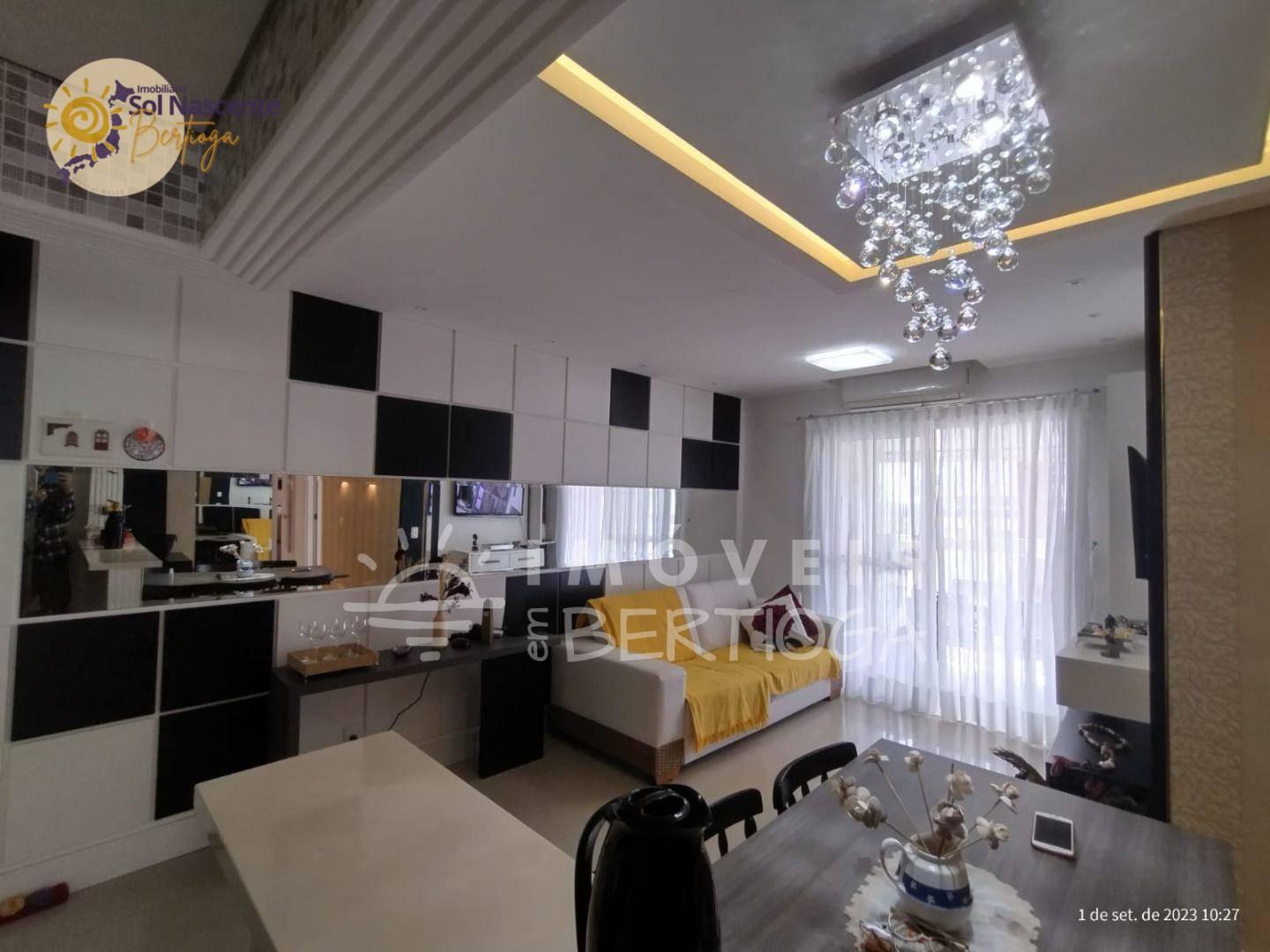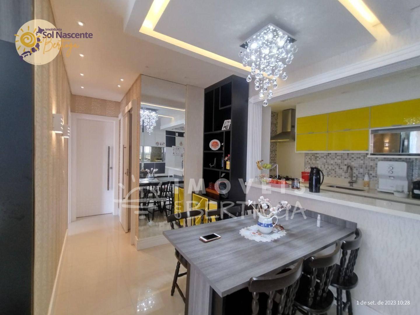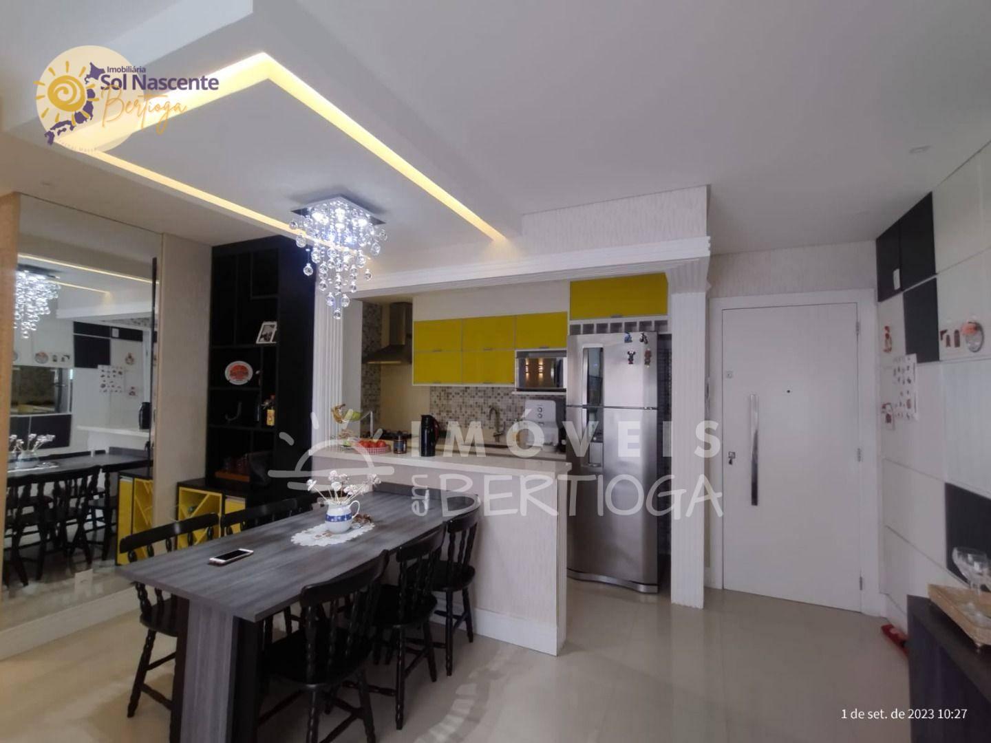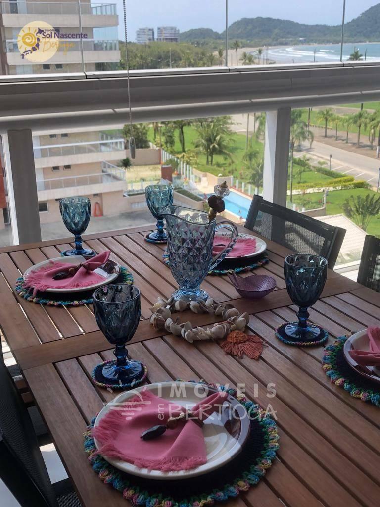 Ótimo apartamento pé na areia com uma vista privilegiada para o mar e o nascer do sol, com 2 dormitórios, sendo um suíte, 1 banheiro social, uma sala integrada com a cozinha, área de serviço, uma ótima sacada gourmet com churrasqueira e opção de som ambiente, piscina, sala de jogos, playground e garagem com 2 vagas.