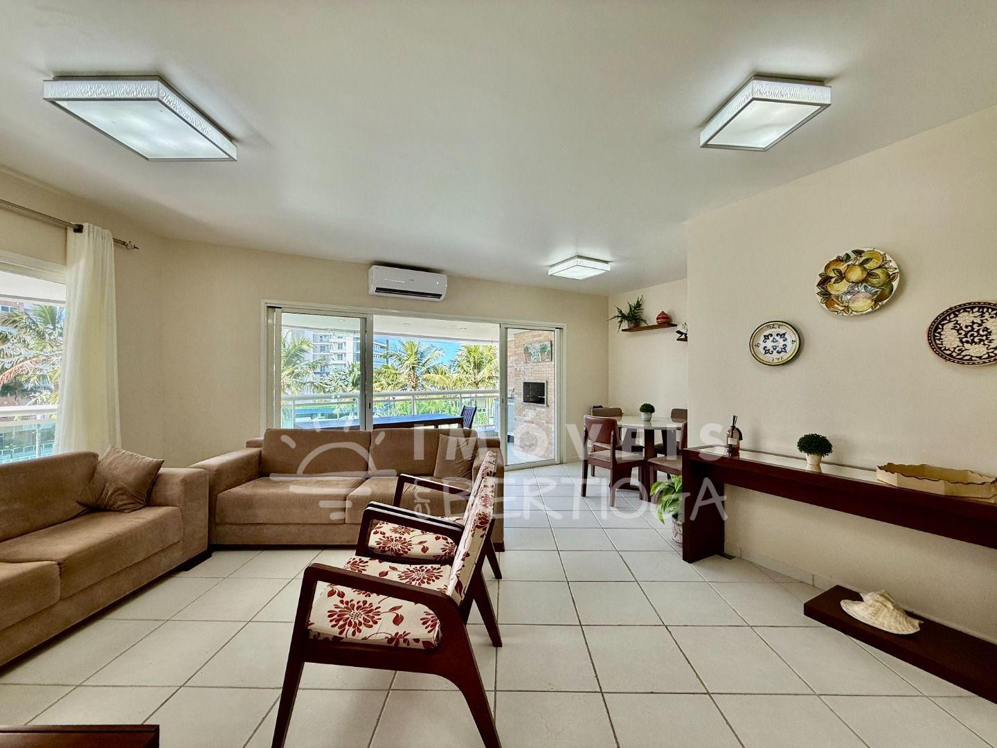 Com 143,20m² de área útil, este apartamento mobiliado oferece o equilíbrio perfeito entre sofisticação e conforto à beira-mar. São três suítes bem distribuídas, ideais para garantir privacidade e bem-estar a todos os moradores. A presença de um banheiro social complementa a praticidade do layout.