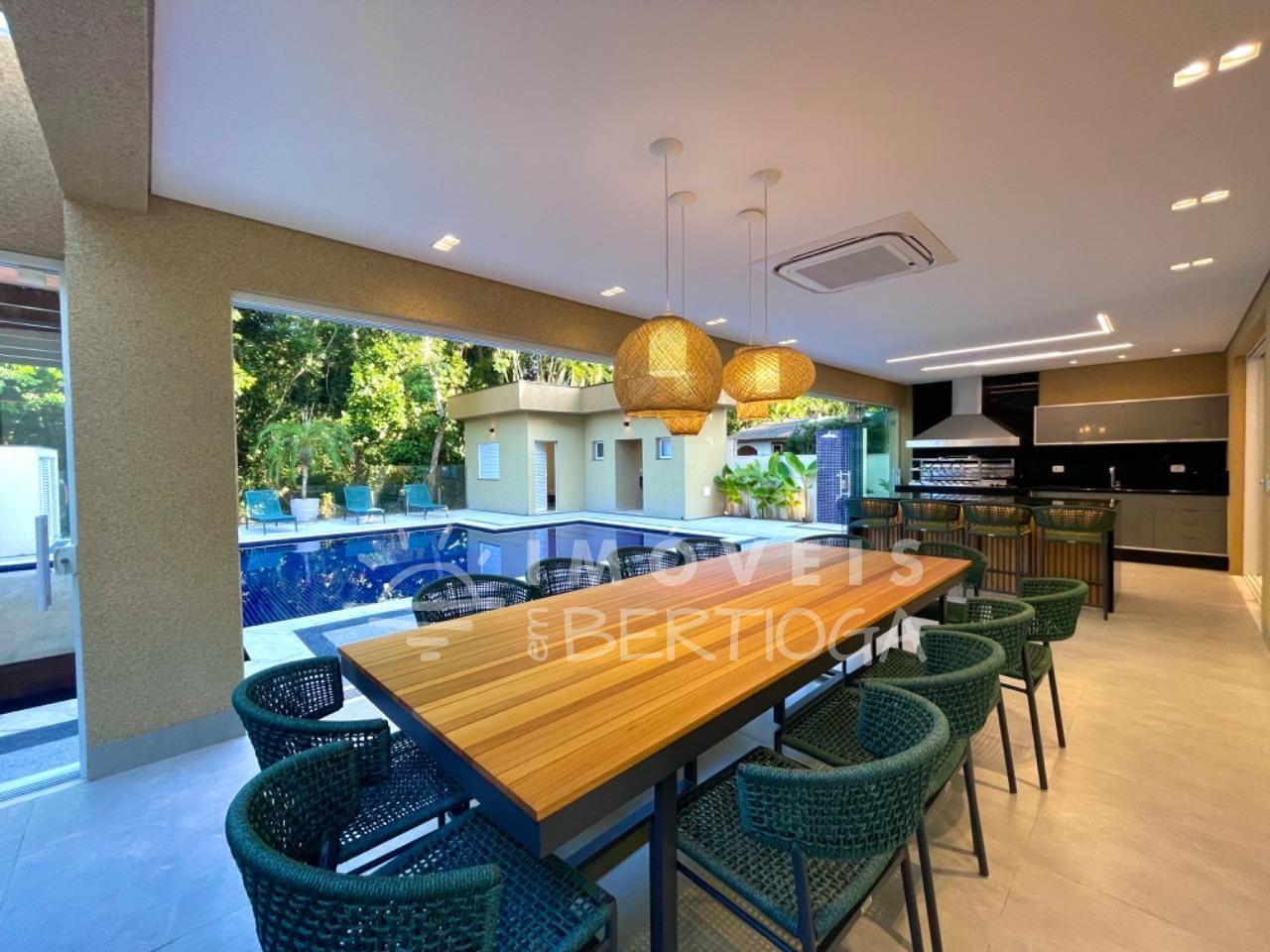 Excelente casa nova, com 420 m² de área construída, 5 suítes sendo a máster com amplo closet, living para 2 ambientes, varanda com espaço gourmet, cozinha americana completa e integrada, área de serviço, churrasqueira e piscina com maravilhosa área verde.
