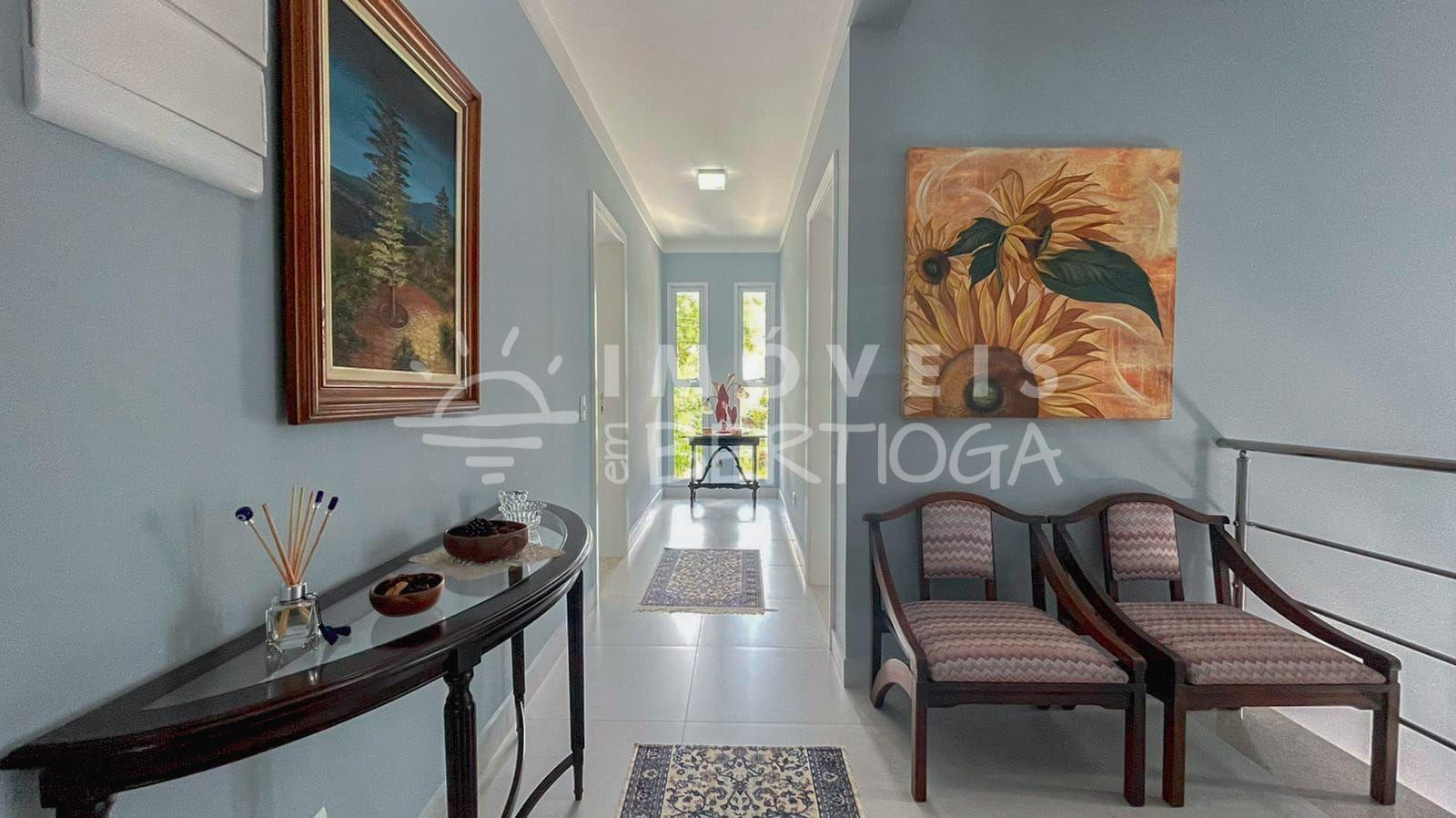 No pavimento superior, você encontrará seis suítes, garantindo conforto e privacidade para toda a família. A propriedade conta com quatro vagas de garagem.
