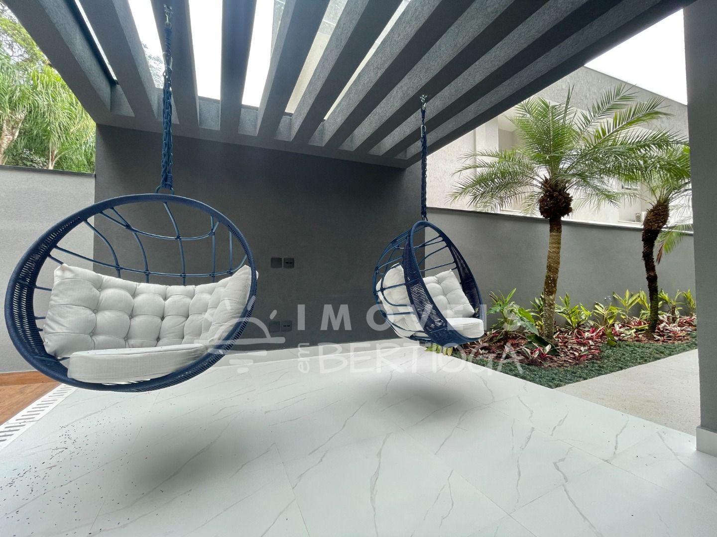 Área gourmet com churrasqueira, cozinha espaçosa, jardim interno, ar-condicionado, aquecimento solar e lavanderia equipada.
