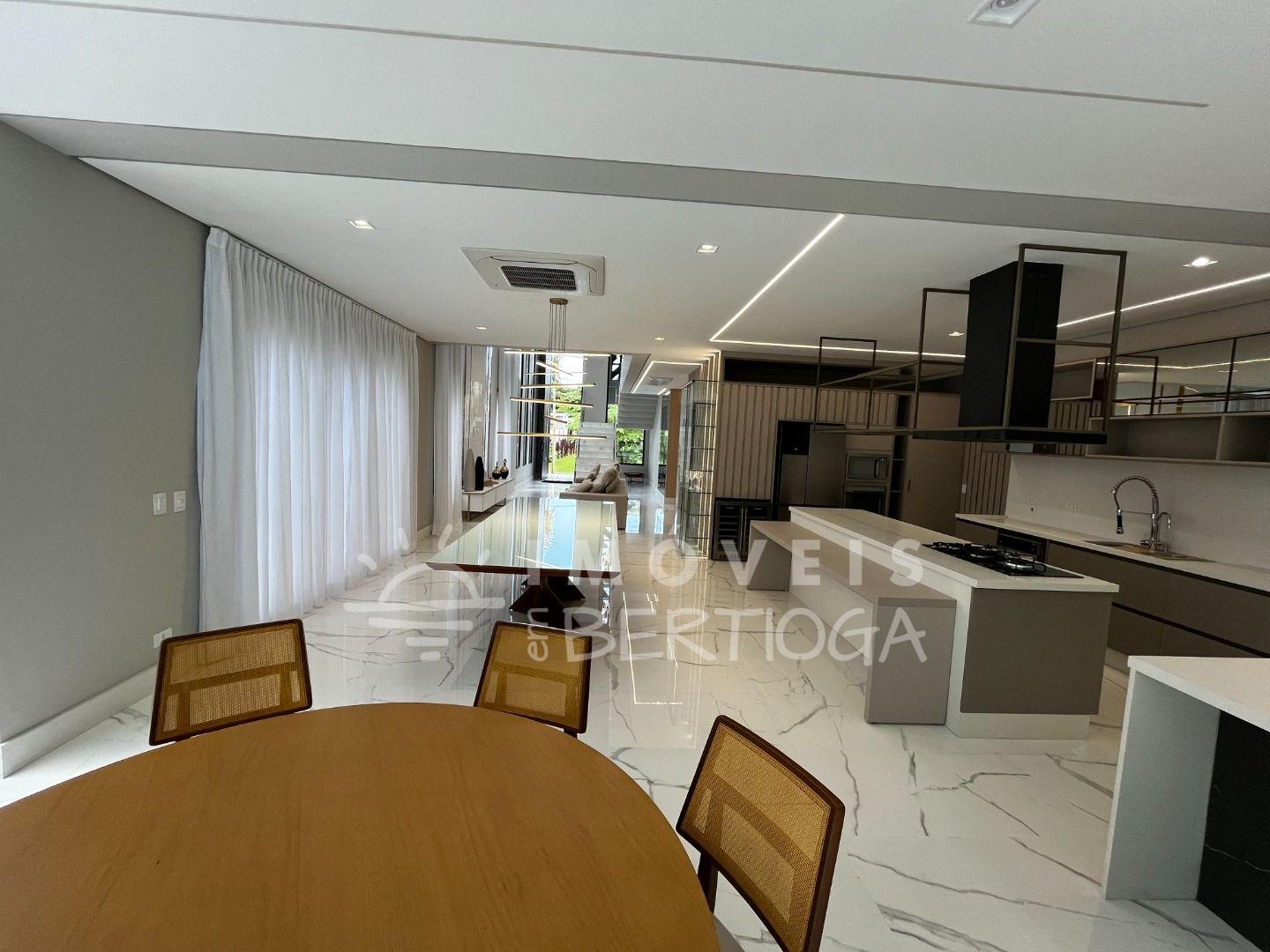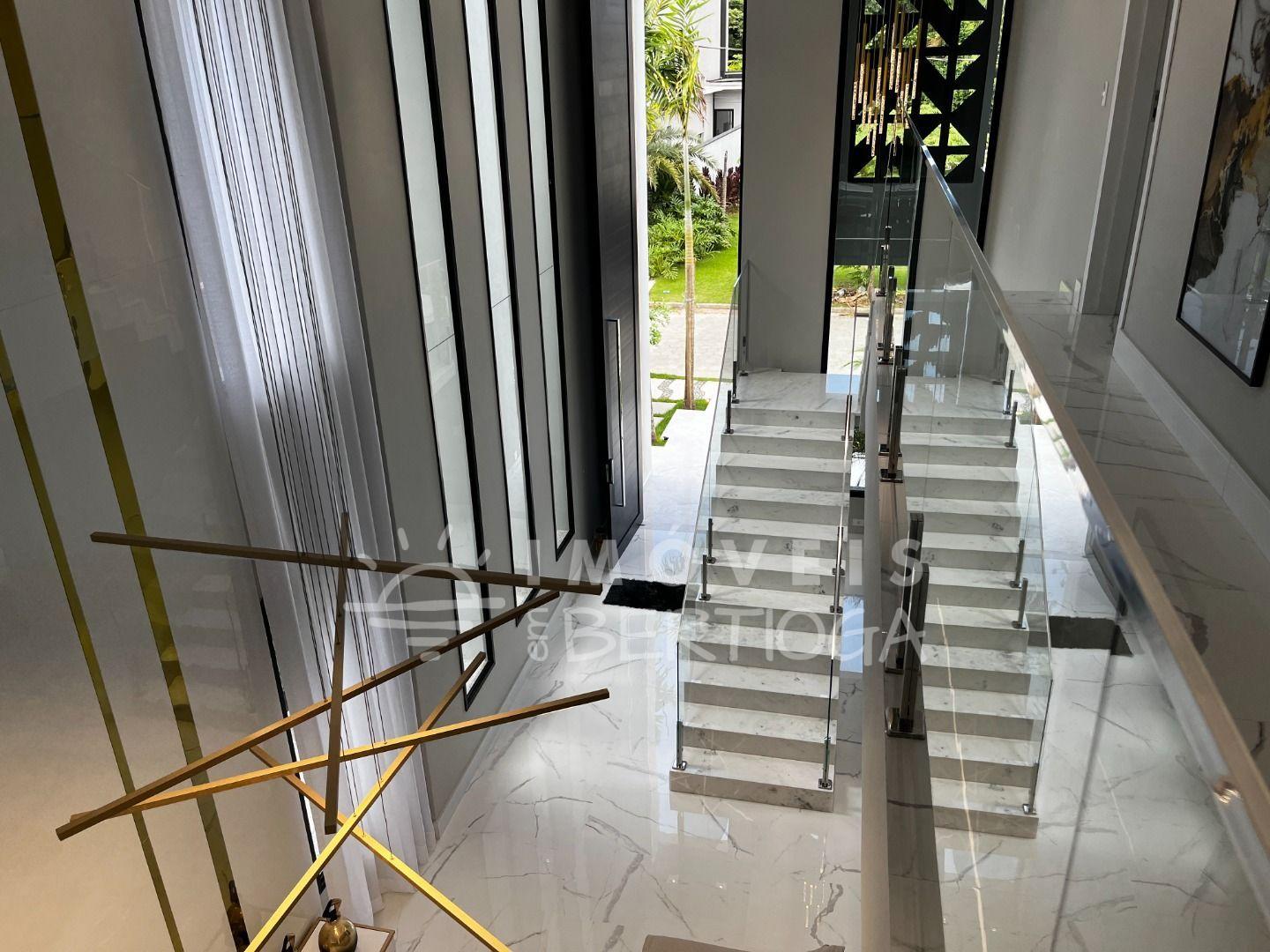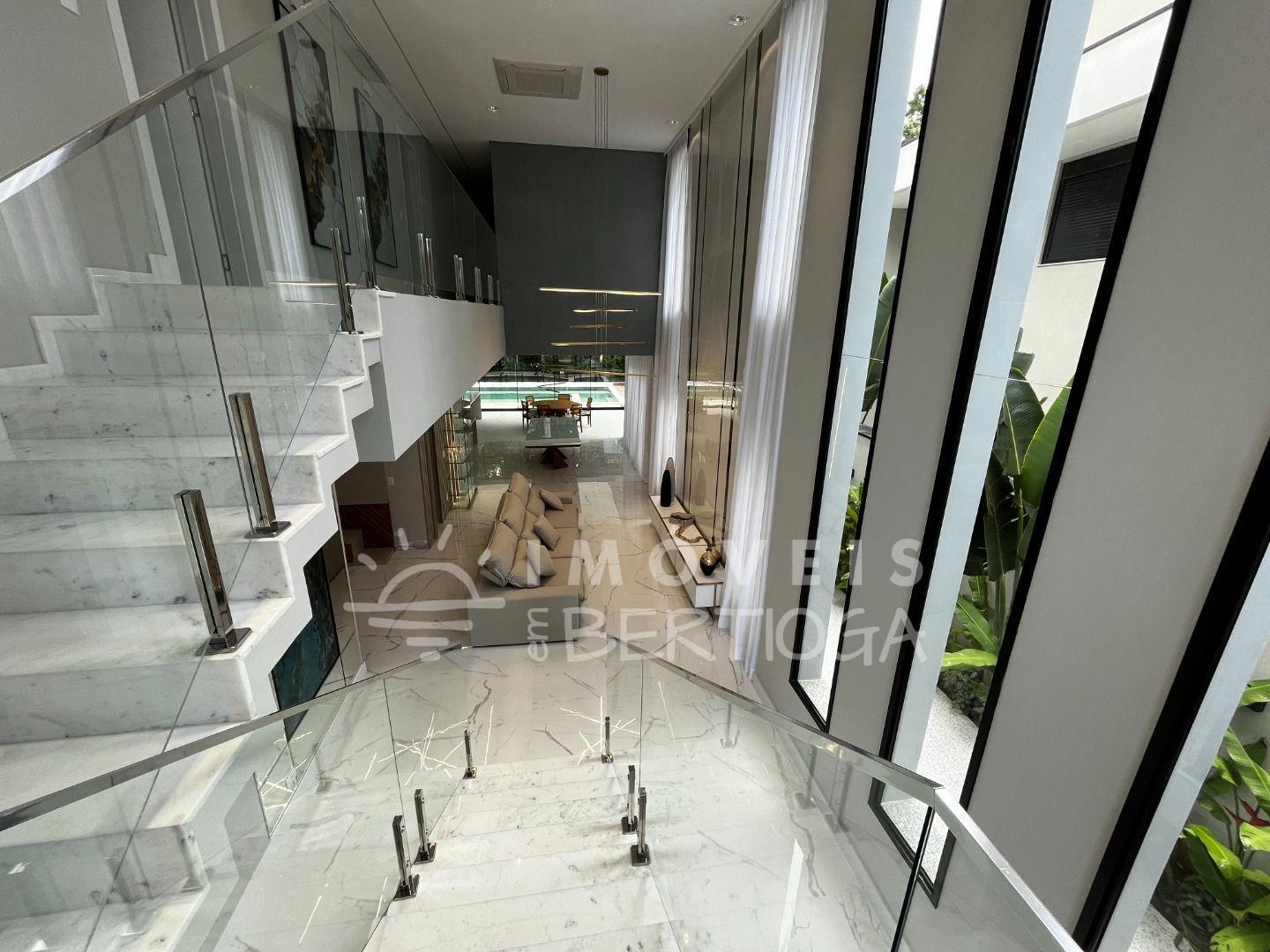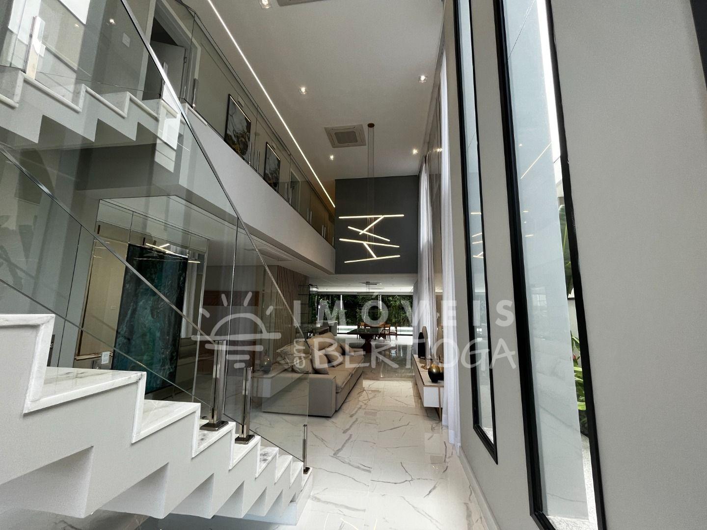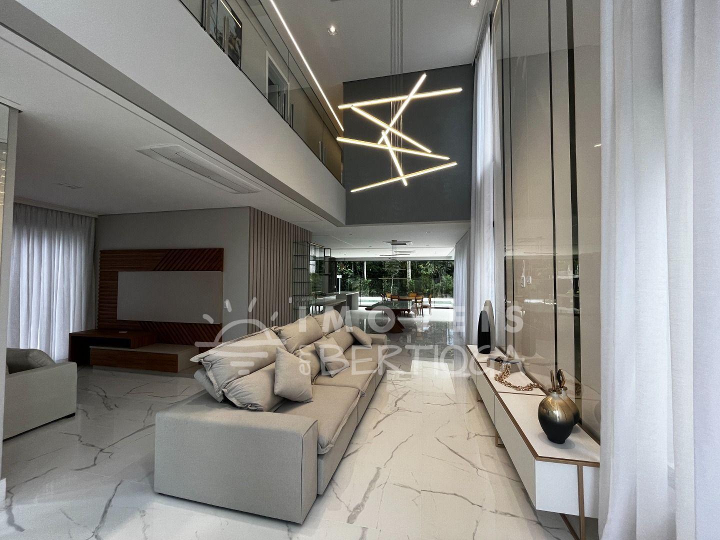 A casa conta com 5 suítes, podendo ser adaptada para 6, incluindo uma suíte master com closet e uma luxuosa banheira de imersão. Toda a residência é finamente decorada e mobiliada, com pé direito alto que traz uma sensação de amplitude.