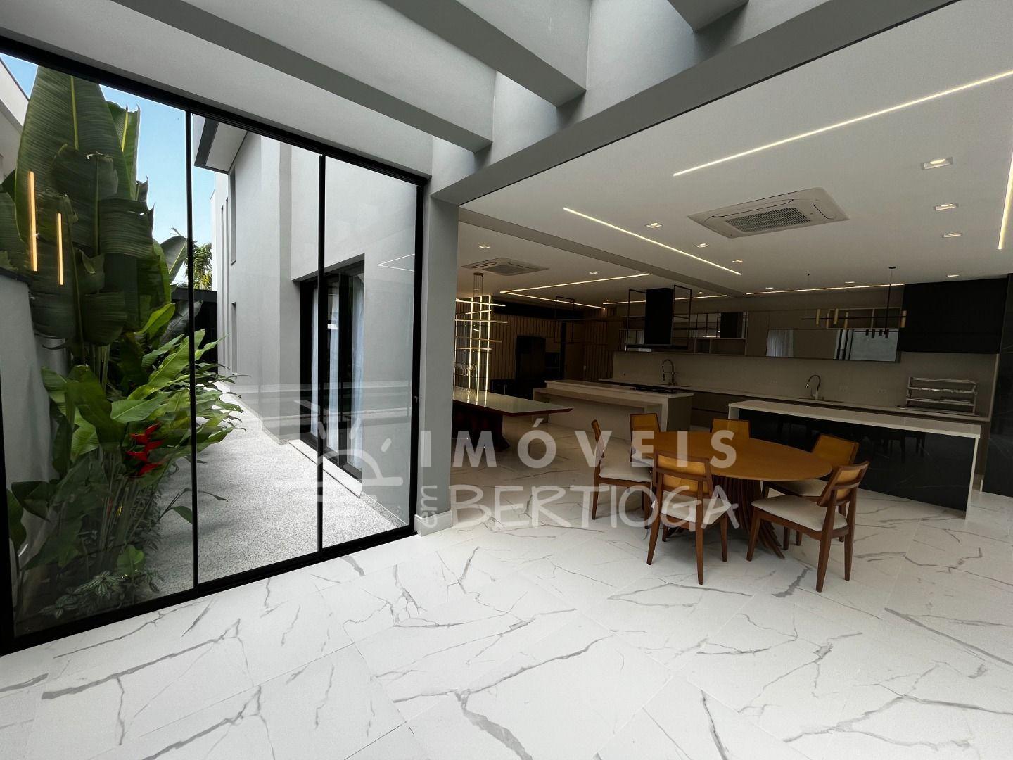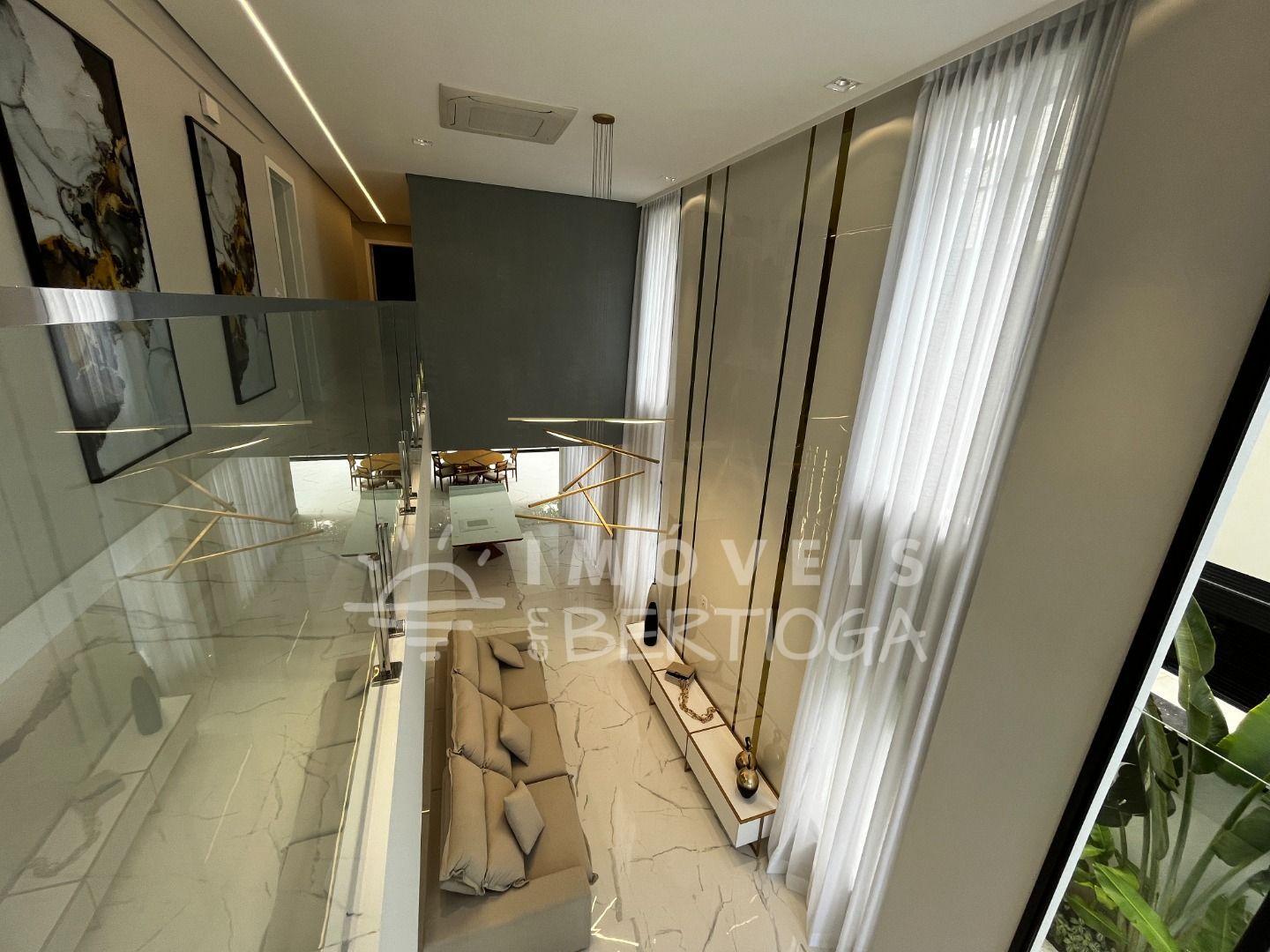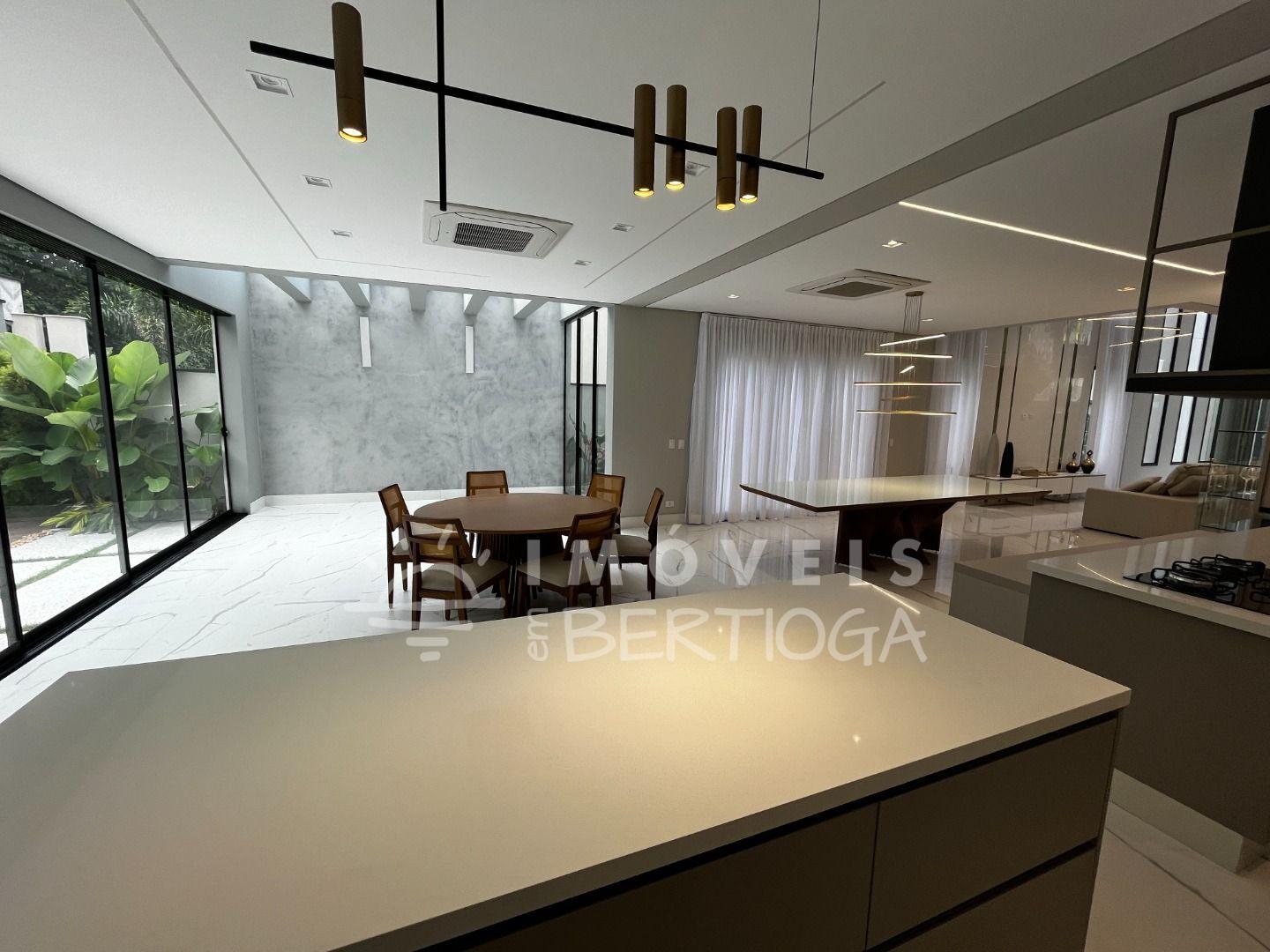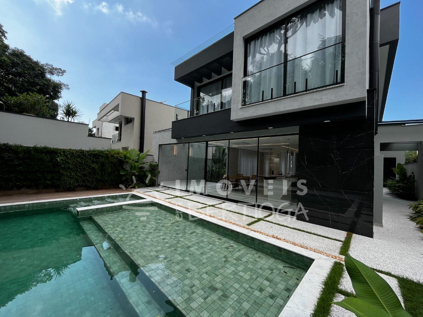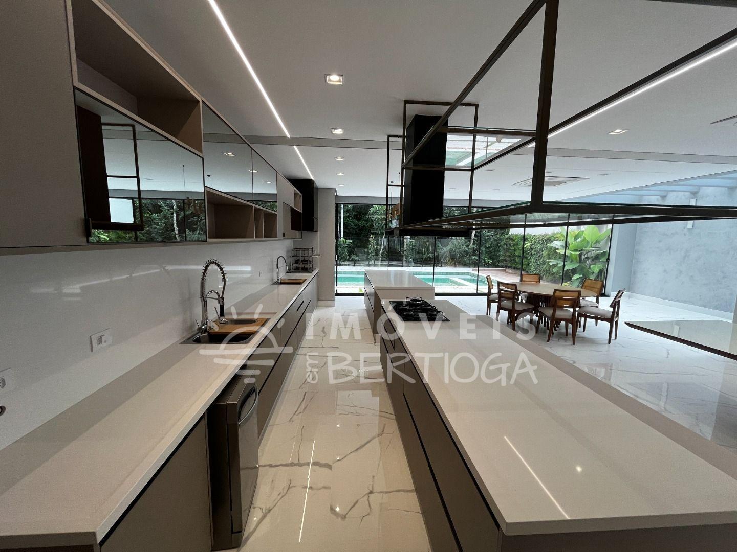 A casa conta com 5 suítes, podendo ser adaptada para 6, incluindo uma suíte master com closet e uma luxuosa banheira de imersão. Toda a residência é finamente decorada e mobiliada, com pé direito alto que traz uma sensação de amplitude.