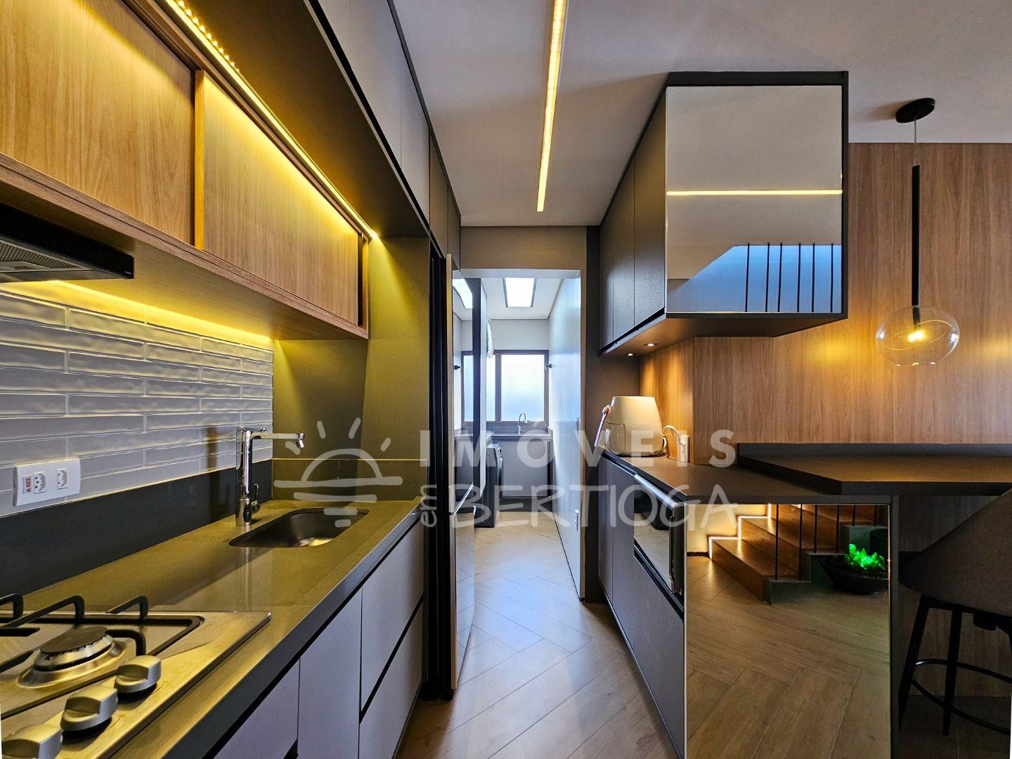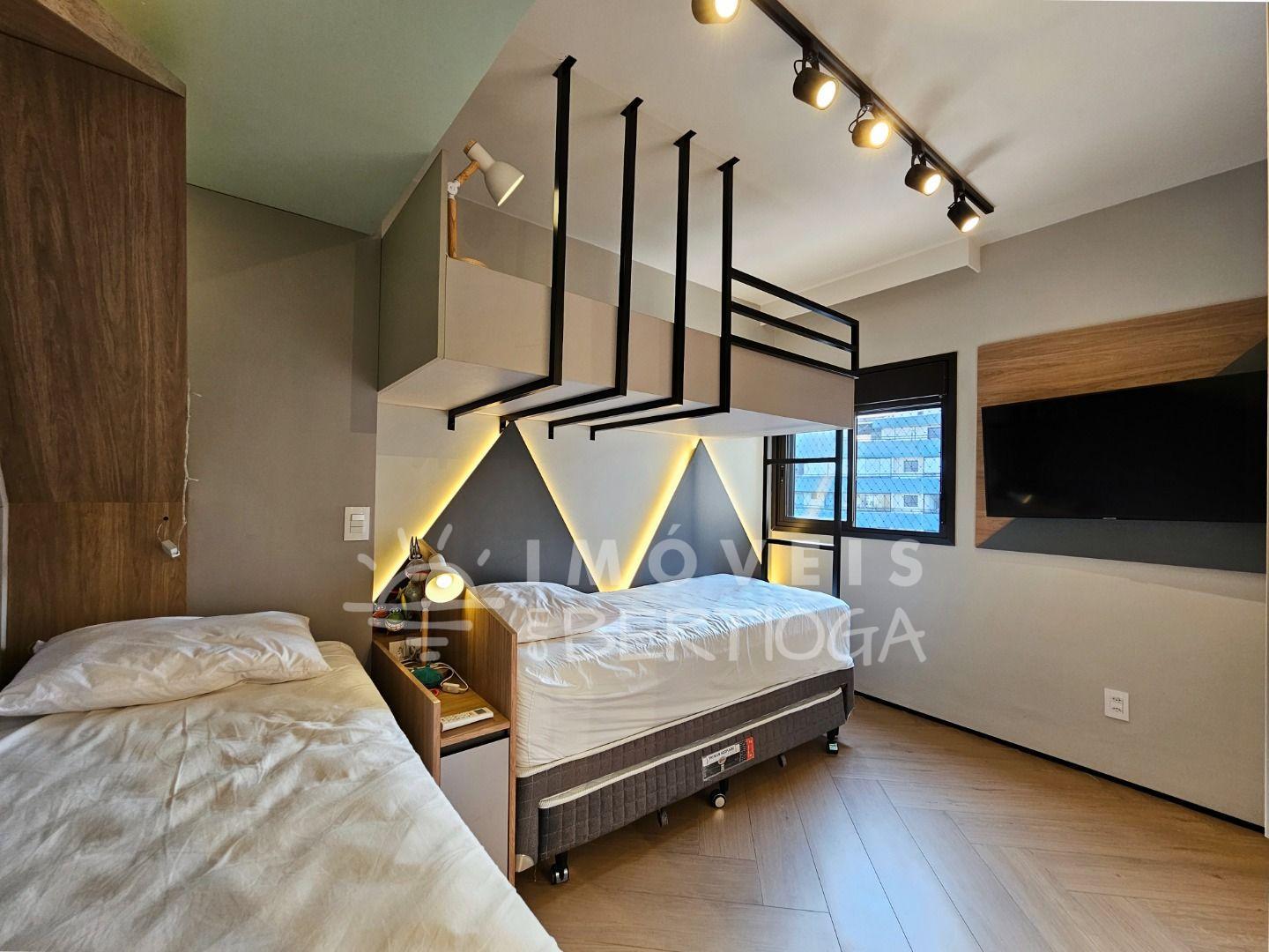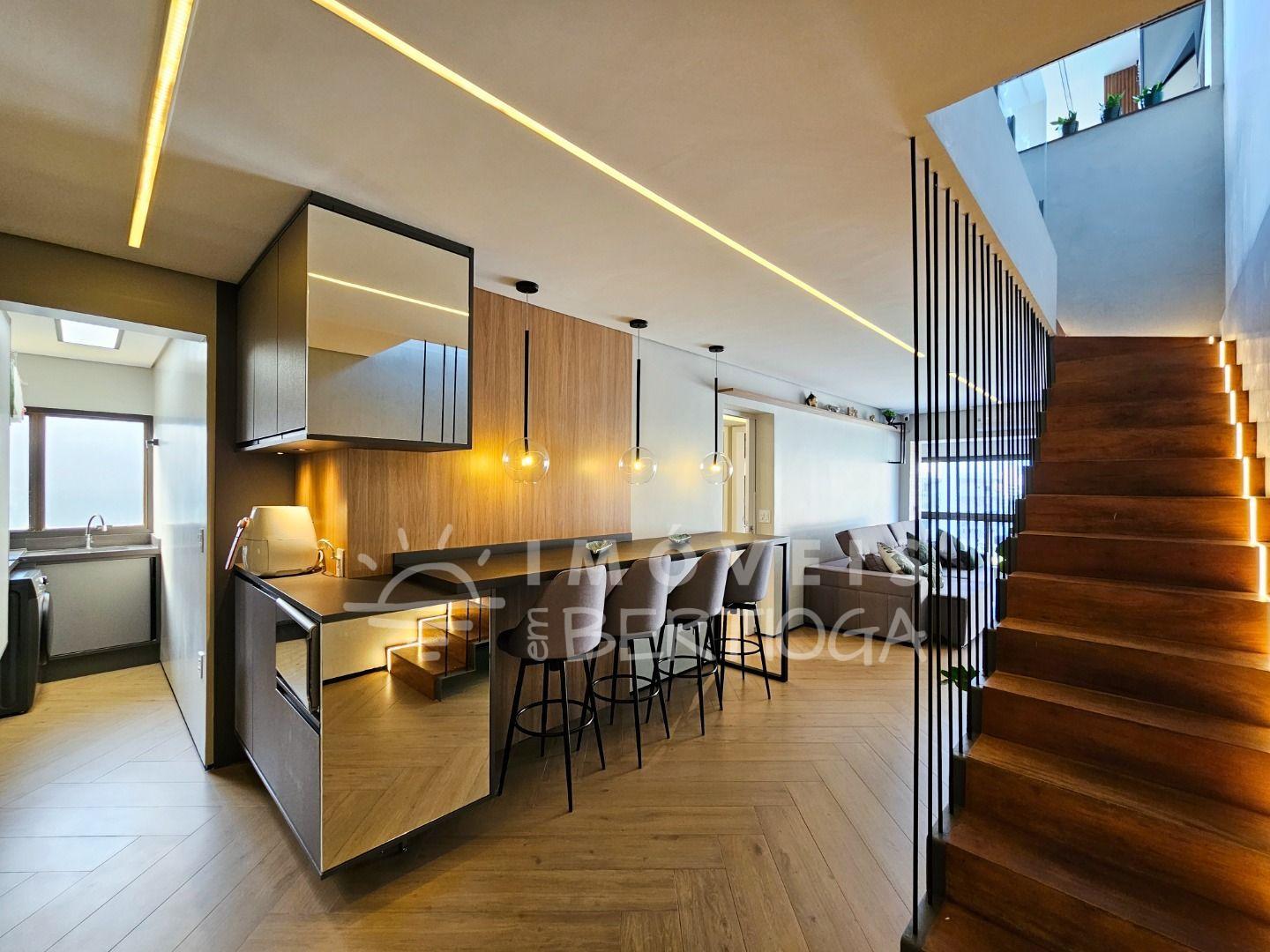 São 311 m² de área útil, 5 dormitórios (sendo 3 suítes), varanda gourmet, ar-condicionado e 3 vagas de garagem.