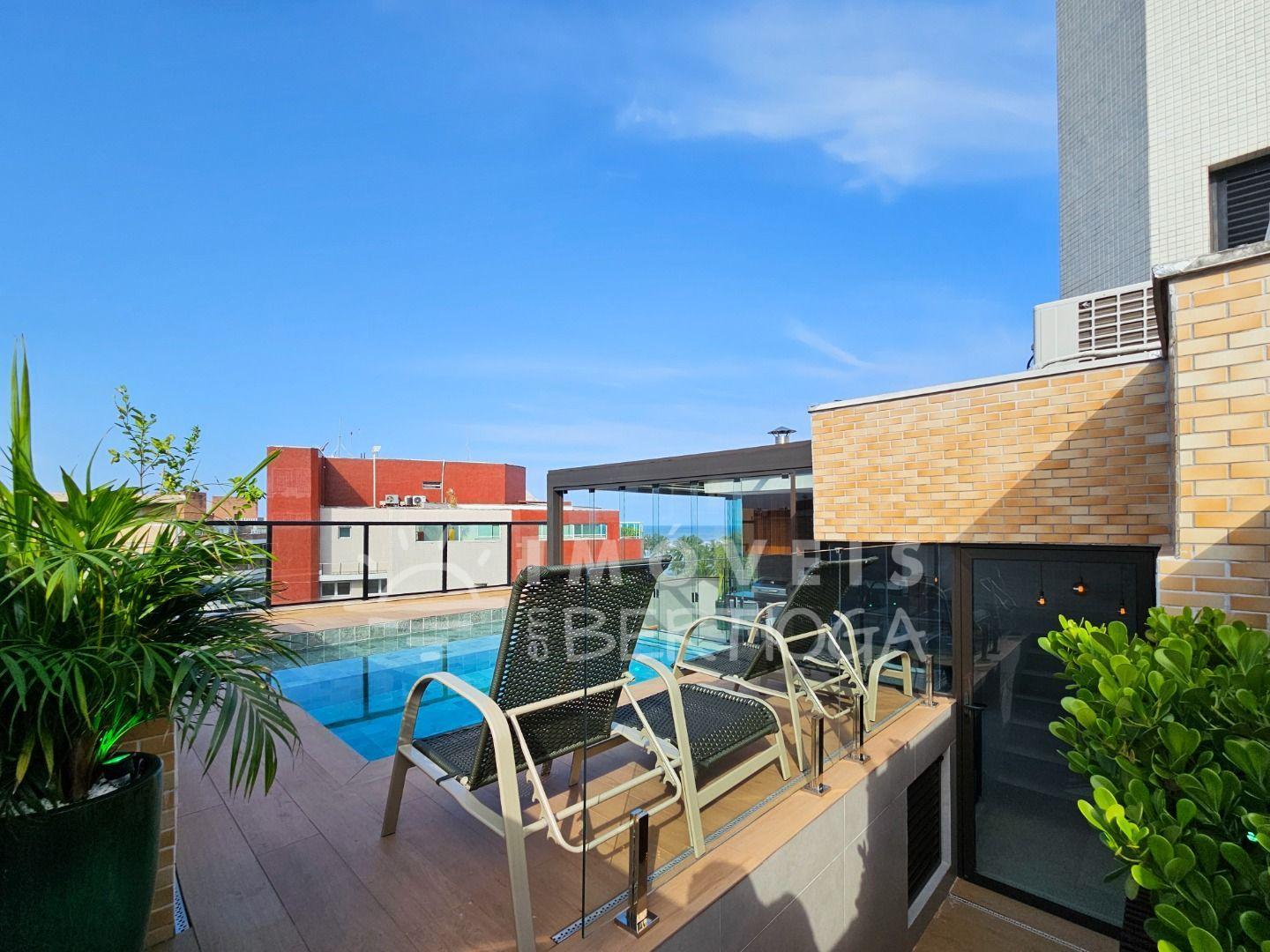 Cobertura com uma bela piscina, vista para a praia e espaço incrível com churrasqueira. Não à toa, este apartamento chama atenção por vários motivos na Riviera de São Lourenço.