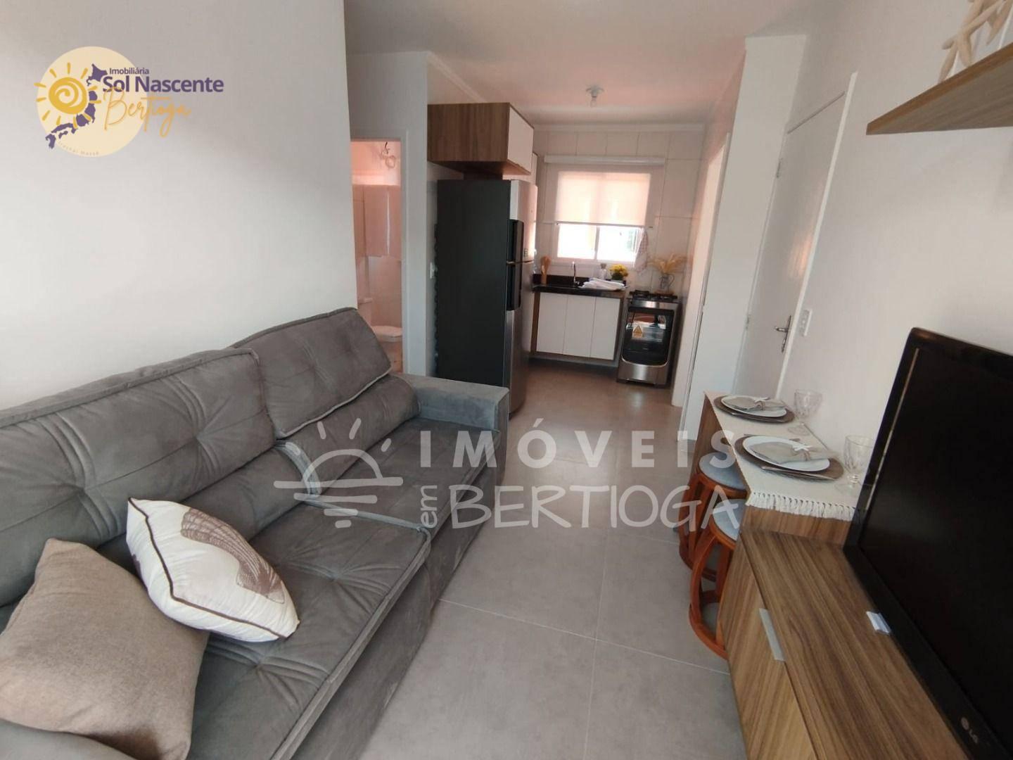 Apartamentos novos com 02 dormitórios, sendo uma suíte, lavabo, sala, cozinha americana, área de serviço e uma vaga de garagem. Aproximadamente 750 metros da praia do Indaiá.